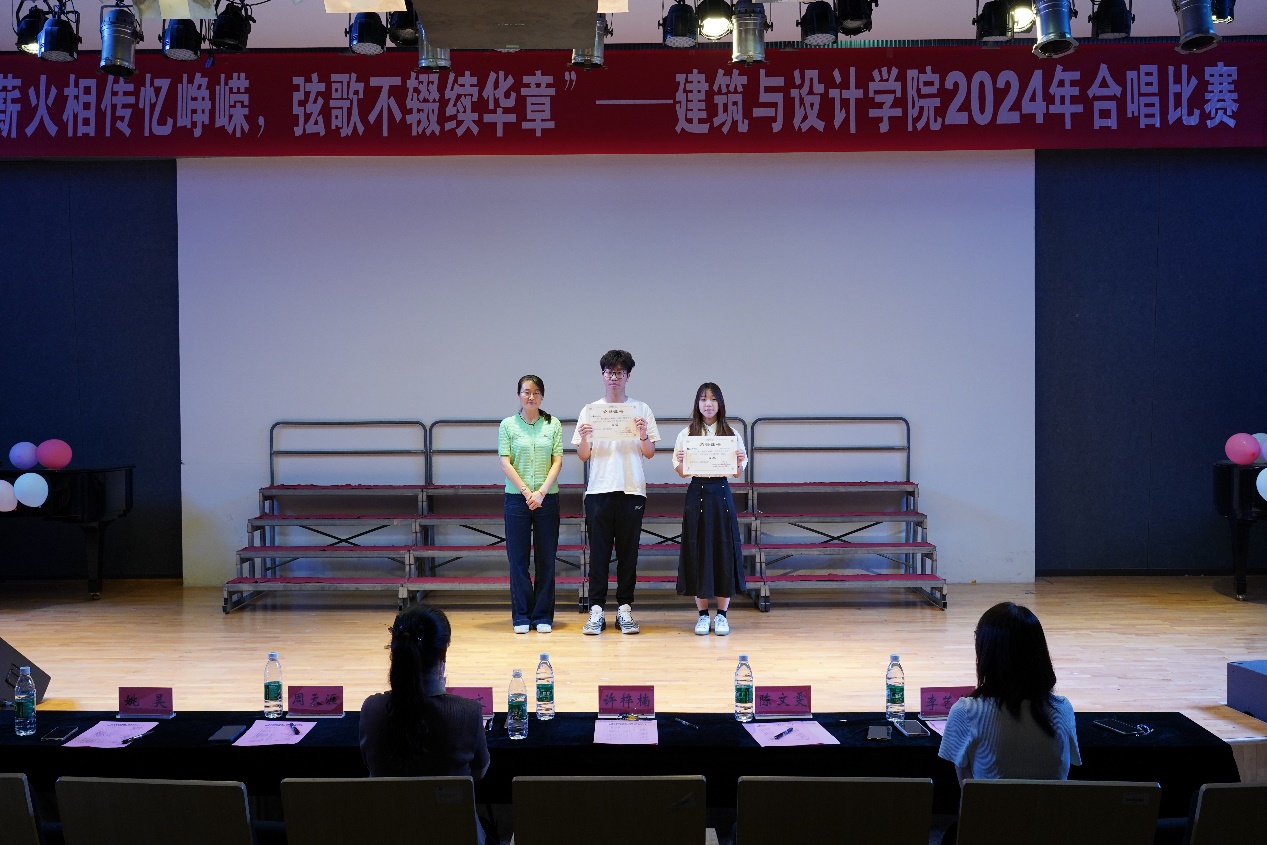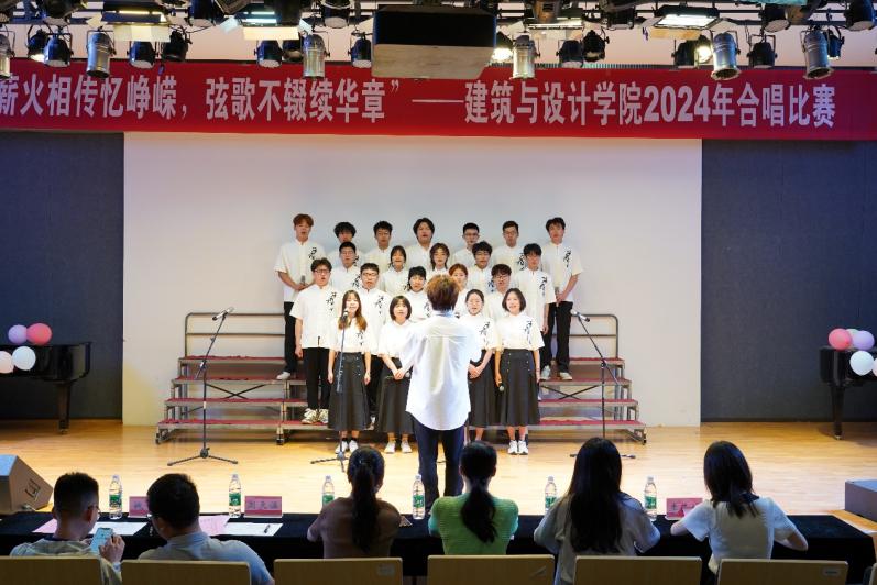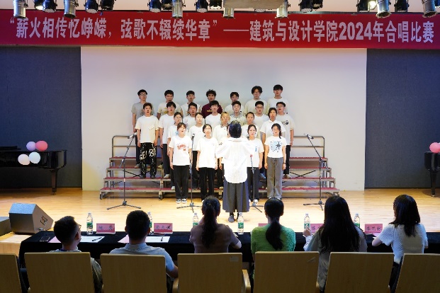 5月25日上午,建筑与设计学院在二楼报告厅举办“薪火相传忆峥嵘 弦歌不辍续华章”2024年合唱比赛。院党委副书记许梓楠,人文与艺术学院音乐系副教授朱文,辅导员陈文雯、周天涯、姚昊、李艺林担任评委。我院2022级、2023级本科生共18个班级参加比赛,潘虹旭、吕斓担任主持人。