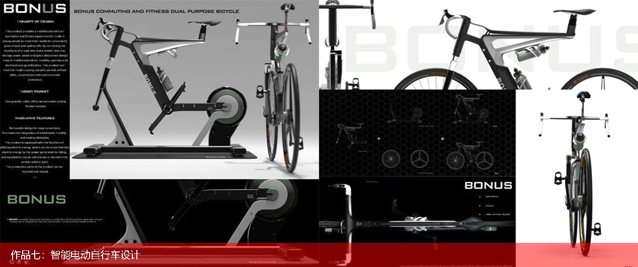 获得第二十五届全球自行车设计比赛金奖的作品由姚君教授指导、张杰设计完成的“BONUS COMMUTING AND FITNESS DUAL PURPOSE BICYCLE” 融合了通勤和健身的功能,可以为用户创造多种骑行场景。
