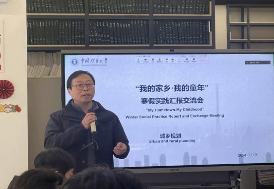 3月13日下午,建筑与设计学院城乡规划系组织2022级城乡规划专业本科学生,在一楼资料室开展“我的家乡·我的童年”主题寒假专业社会实践成果汇报交流会。德国工程院院士、城乡规划系教授Mueller,学院副院长孙良教授,城乡规划系主任常江教授,Schiappacasse教授及朱文龙、邓元媛、周宏轩和赵立元等老师参加会议。会议由22级城规班班主任张潇主持。