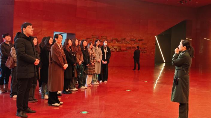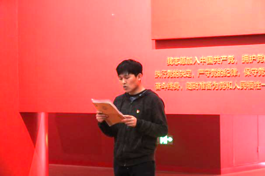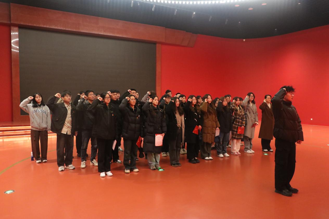 参观结束后,学院在纪念馆传承大厅举行新党员入党宣誓仪式,仪式由周天涯主持。老党员代表董景刚、新党员代表曹家轩分别发言,表明投身共产主义事业的坚定决心。许梓楠副书记及老党员代表分别为新党员发放《入党通知单》。随后举行了新党员入党宣誓仪式。