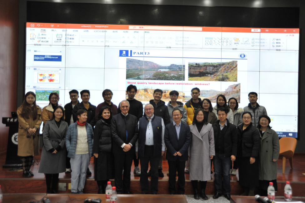 11月24日下午,“可持续发展”系列国际讲座第二场讲座在信控学院报告厅举行,本次讲座的主题是“通过城市荒野增强城市生物多样性”,来自奥地利洛德伦萨尔茨堡大学的Jurgen Breuste教授应邀做报告。校教务部部长、环境与测绘学院教授张绍良作为对谈嘉宾出席,建筑与设计学院院长罗萍嘉、城乡规划系主任常江教授和Paulina Schiappacasse副教授参加。讲座由建筑与设计学院Müller院士及环境设计系副教授李莎共同主持。