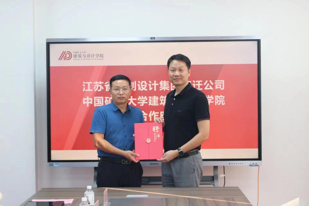 座谈会上,举行了聘请宿迁公司总经理许炎和副总规划师陈小韦为设计学院校外导师的聘任仪式,由设计学院党委书记龙景奎为两位导师颁发聘书。双方还就专项奖学金设置及校企合作基地建设等问题进行了深入交流。