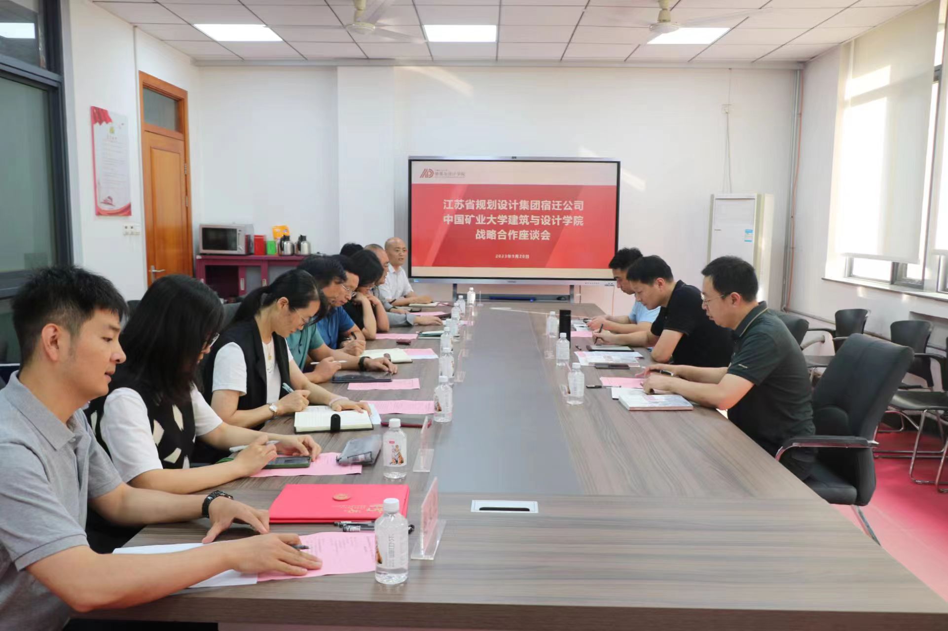 许炎总经理简单介绍江苏省规划设计集团宿迁公司的基本情况,阐述了企业孜孜以求、先行一步、协同共生、创造价值,强化国企担当、服务地方发展所做出的贡献及取得的成果,表达了希望在科研、人才等方面与矿大开展全面合作的意向。
