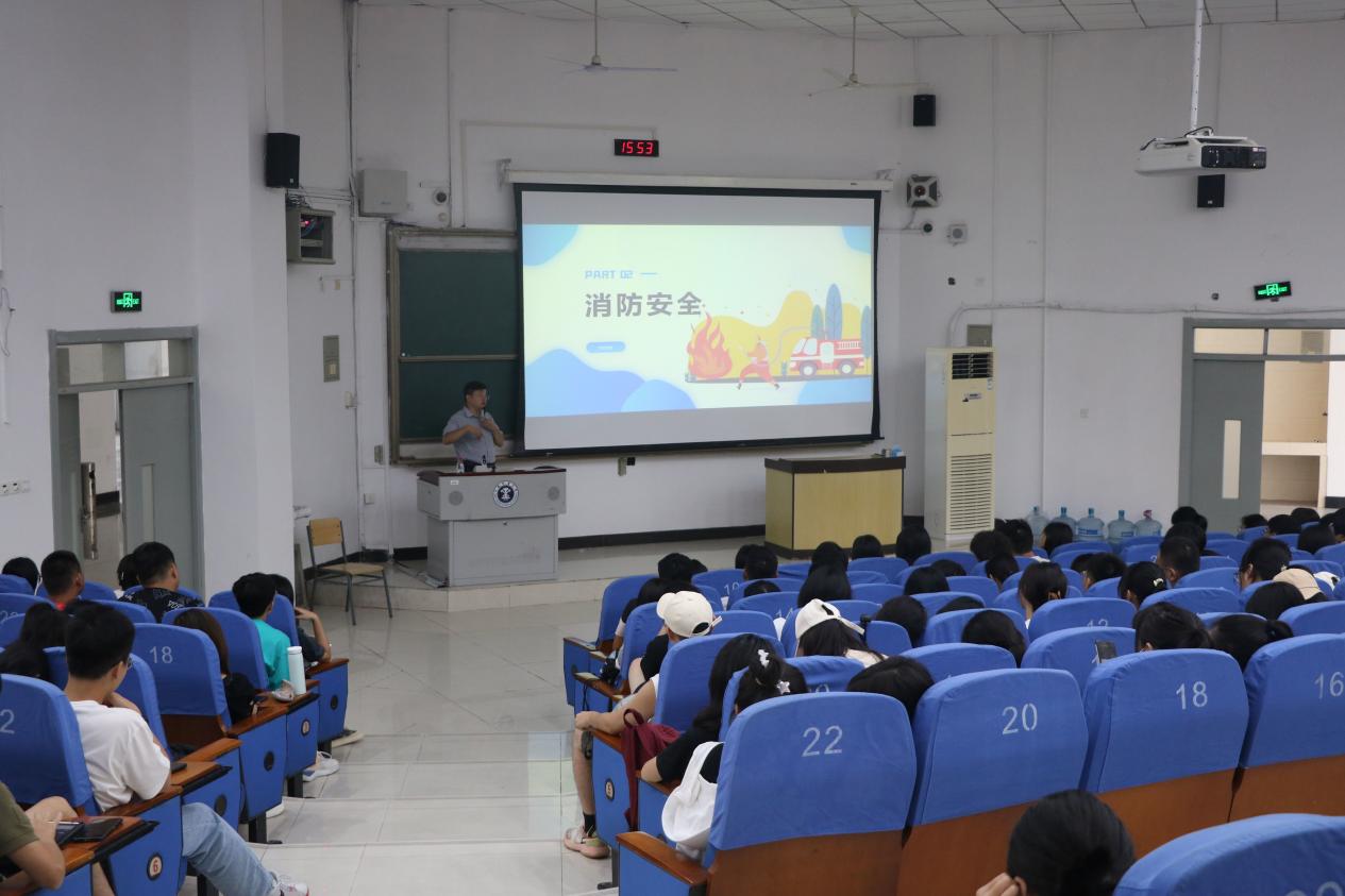 瞿望老师从安全概述、消防安全、交通安全、人身财产安全四个方面,对同学们进行校园安全教育并传授给新生们个人应急技巧。他通过引用丰富的案例及安全检查中发现的安全隐患现场照片进行解读,为新生同学们介绍了校园安全的重要性,强调了宿舍安全问题,要求同学们务必遵守校园安全管理各项规定。翟老师教育同学们安全无小事,切实从自身做起,提高安全意识与个人素质。