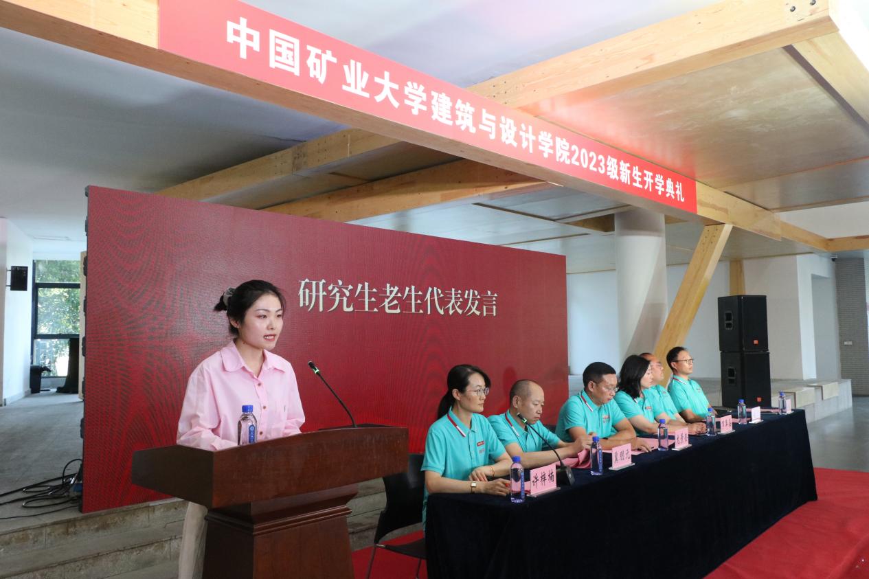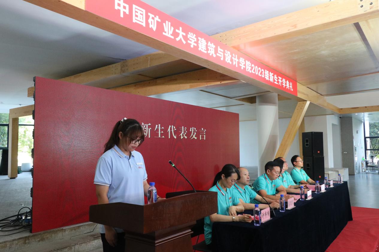 环境设计2023级龚于恒作为新生代表发言,她表达了对矿大的向往和对大学生活的憧憬,提出了个人的规划思考,表达了不负韶华的信念与决心。
