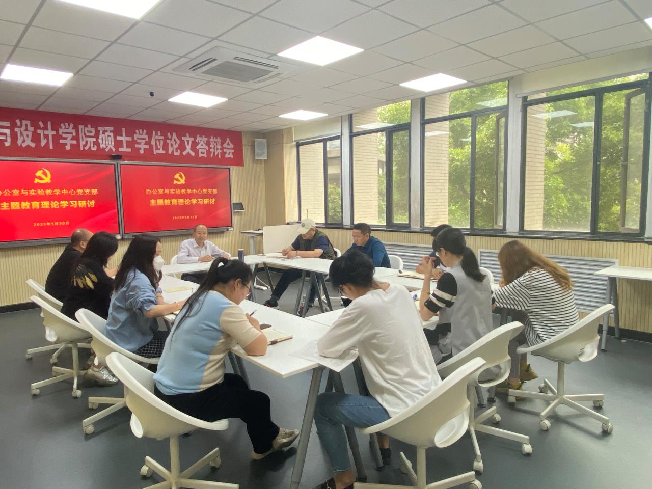 5月30日,建筑与设计学院办公室与实验教学中心党支部在学院B203召开主题教育学习研讨会,支部全体党员参加,研讨会由支部书记范乾坤主持。
