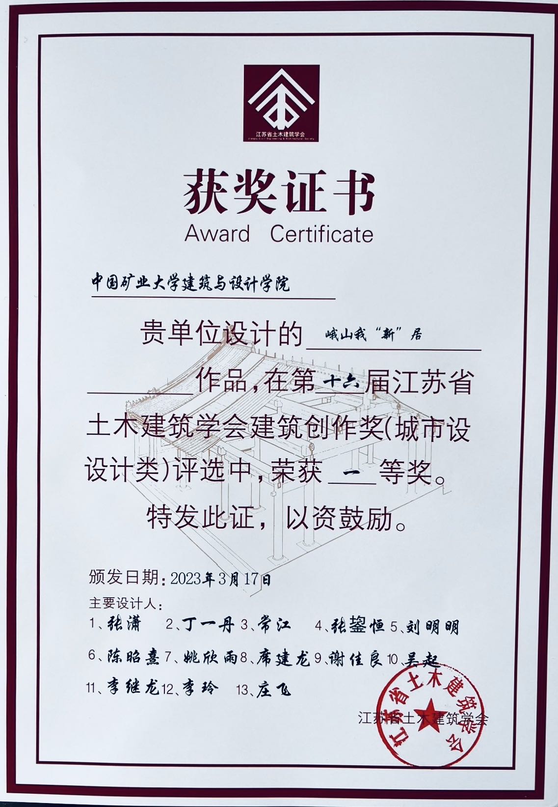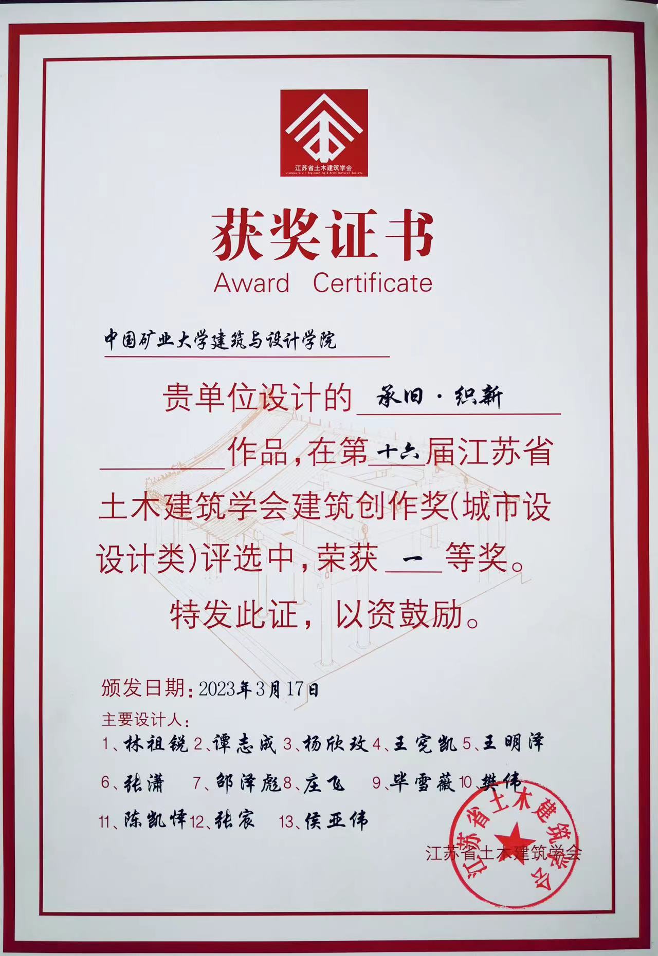 3月17日,江苏省土木建筑学会公布了第十六届“建筑创作奖”获奖名单,中国矿业大学建筑与设计学院在城市设计类和建筑设计类项目中共获一等奖2项、二等奖2项、三等奖7项。