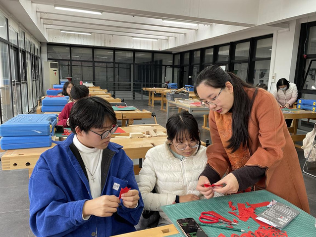 11月19日下午,建筑与设计学院在学院楼A602开展实验室开放系列项目——“剪纸艺术·传统手工艺术的魅力”活动。环境设计系赵静老师、实验教学中心王紫莹老师和来自不同学院的十余位学生参加。