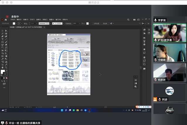 9月29日,在线评图课程如期开始。云端课堂在胡彬老师的主持下有序开展。每一名学生汇报完成后,全体任课老师进行点评。师生们充分利用现代教学工具,在电子图纸上圈画标注,进行互动式评图,讨论过程可以同时被在线课堂中的所有人员观摩到。学生们纷纷反映,这种评图模式比线下评图更清晰更直观,效果很好。