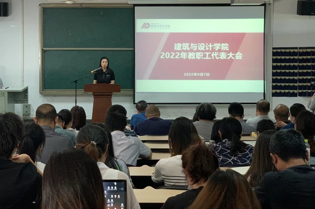 9月7日下午,建筑与设计学院在A310会议室召开2022年教职工代表大会。会议审议了《学院工作报告》《学院财务工作报告》《建筑与设计学院奖励性年度综合绩效考评分配办法》等。院党委书记龙景奎,院长罗萍嘉,副院长姚君、冀朋元、孙良,院工会主席王栋,学院教职工及学生代表共计100余人参加会议。会议由学院党委副书记许梓楠主持。