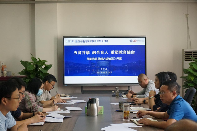 9月16日上午,建筑与设计学院于学院楼B302会议室召开教育思想大讨论推进会。建筑与设计学院党委书记龙景奎、院长罗萍嘉、副院长冀朋元、孙良、姚君、党委副书记许梓楠、各系部支部书记、系主任、支部副书记、系副主任及学院机关全体科长、实验中心主任参加本次会议。