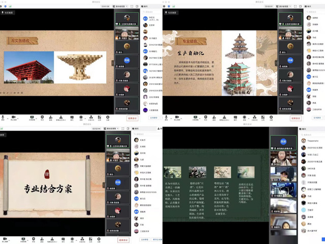 学院各专业的主干课程教学方式有别于传统的教学体系或理论课程,如小班授课分组讨论、设计前期调研、设计过程评图、修改草图、技法观摩,训练指导等均是在线教学所面临的挑战。因疫情,多次开展的线上教学方式让老师们已经摸索出了一套打破传统区别“面对面”课堂教学的线上教学方法。老师们充分利用网络丰富的教学资源,及时调整教学内容;利用腾讯课堂、MOOC教学视频及课件等平台,结合作图和建模软件、微信群同步图文讲解+指导、在线课堂作业、师生在线讨论等形式开展授课。线上教学手段丰富,使得学生参与度高、积极性强,气氛热烈融洽。