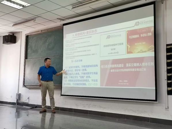 2022年6月1日下午14:30,建筑与设计学院在学院楼B310室召开全院教职工大会,学院党委书记龙景奎主持会议。
