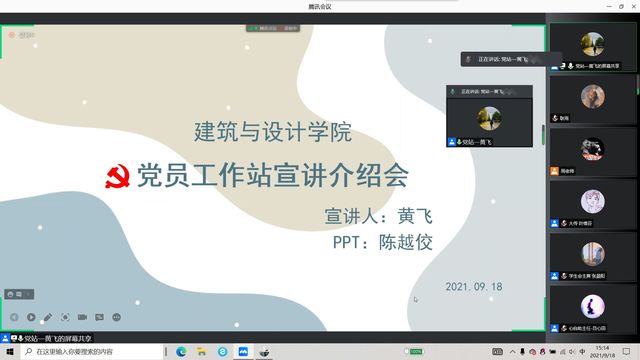 为了使2021级新生了解建筑与设计学院里各个部门的职能,帮助新生更好地开展课外生活,9月18日,建筑与设计学院各学生组织举行线上联合招新宣讲会。本次联合招新宣讲会是由建筑与设计学院学生会、团委、大学生传媒中心、党员工作站、行健服务分队、大学生心理自助中心、科技创新协会、青年志愿者协会、社团联合会九大学生组织联合发起。建筑与设计学院各学生组织负责人及2021级全体新生参加本次线上联合宣讲会。