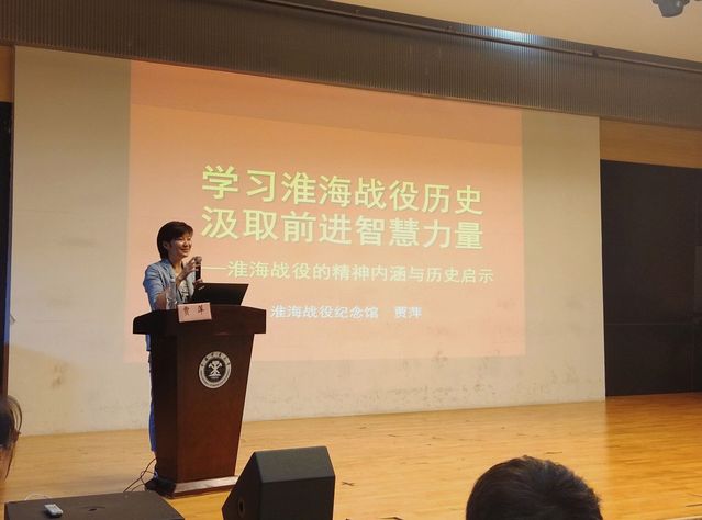 第二部分红色教育是贾萍副局长从淮海战役纪念碑谈起,结合淮海战争示意图带领同学们回顾了淮海战役的历史进程。淮海战役是三大战役中解放军牺牲最重,歼敌数量最多,政治影响最大、战争样式最复杂的战役。贾萍副局长通过播放抗战老兵的回忆录像以及和同学们进行战场模拟分析等方式,带领同学们深入的回顾了当时抗战的艰辛。
