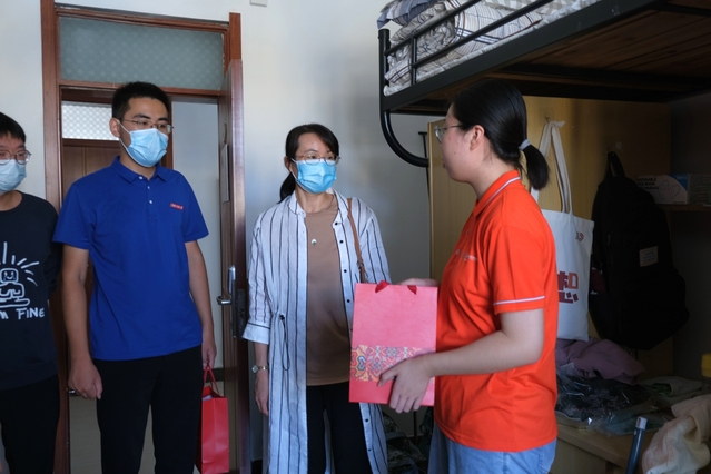 老师们的到来受到同学们的热情真挚的欢迎,许书记和蔼可亲的态度和幽默风趣的谈吐拉近了师生间的距离,给同学们送去了温情和关心,表达了学院对2021级全体新生的中秋祝福。走访期间,许书记仔细询问了同学们在新环境下的生活状态,尤其从外地来求学的同学表示关切之情,询问他们对气候的适应情况,同他们聊家常,嘱咐他们多多注意身体,坚持日常锻炼。师生之间其乐融融,亲情般的关怀和温馨沁入每位同学心中。