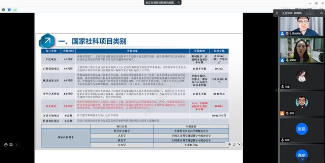 报告会上,吴晓莉教授从设计学科的交叉属性角度,介绍了在智能化时代背景下,如何将设计创新融入产业发展,助力产业变革,进而推动制造业智能化转型升级的理论方法和前沿热点。同时从社会科学及自然科学两个角度,介绍了如何申请国家、省部级基金项目。吴教授生动讲解了多年设计学课题申报体会和研究经验,归纳了设计学科申报书撰写的方法及科学问题凝练的思路。同时鼓励青年教师,一定要梳理自己的博士研究脉络,秉承自己的研究方向构建出科学的研究思路。报告会后,吴晓莉教授与参会的师生就相关问题进行了在线交流。
