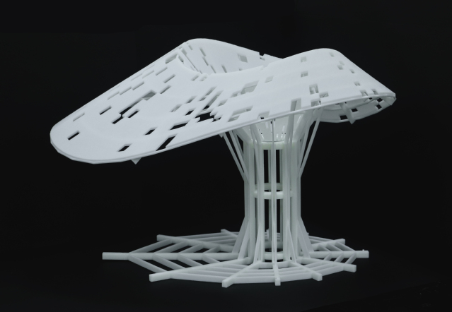 十里烟波,一举风荷。我院代表队的参赛建筑小品《荷筑》以荷叶为亭,独运匠心,起伏柔美的屋顶塑造出惬意的休闲庭院,下沉空间结合公共阅读空间设计,游人可以围坐四周,享受一段阴凉的午后时光。获奖作品的丰富的崭新创意和人文关怀,令海峡两岸大学生实体建构大赛彰显出独特的青春风采和创造活力。通过云端路演,隔空交锋,建构大赛总决赛最终评选出了金奖、银奖和铜奖。据悉,除我院作品《荷筑》获得金奖外,尚有太原理工大学《织荫》、台湾铭传大学《屋顶树梢间》获得银奖;沈阳建筑大学《镜·亭》、内蒙古工业大学《折光穿梁》、福州大学《隐亭》、台北科技大学《氵·木》分别斩获铜奖。
