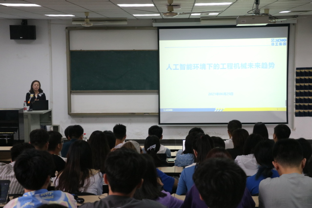 6月25日上午10点,江苏徐工工程机械研究院有限公司总经理助理、国家级工业设计中心蹤雪梅主任,罗萍嘉院长,副院长姚君、孙良等院领导,工业设计专业相关教师及部分同学参会。本次聘任仪式由姚君副院长主持,罗萍嘉院长为蹤雪梅教授颁发聘书。仪式结束之后,蹤雪梅教授演讲了题为“人工智能环境下的工程机械未来趋势”的学术报告。蹤雪梅教授从机群智能化和基于知识的智能设计等方面展开论述,并指出:“人工智能将带来伟大变革,人工智能、5G、物联网等技术的高速发展,使得工程机械无人驾驶、机群协同施工成为现实,智能化、类人化已成为大势所趋。”同时,蹤雪梅教授也对同学们进行了思想上的指导,她说,要时刻保持活力就应做到“对世界充满兴趣、对理想充满执着、对生活充满热爱以及对工作充满热情”。