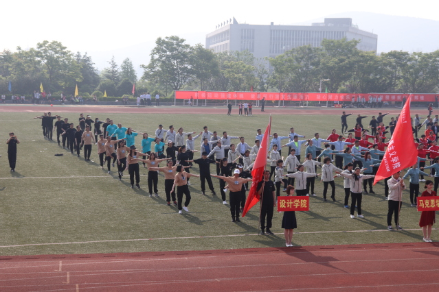 开幕式结束后,设计学院教职工参加了广播体操表演,老师们整齐的动作和认真的态度在运动场上留下了浓墨淡彩的一笔。