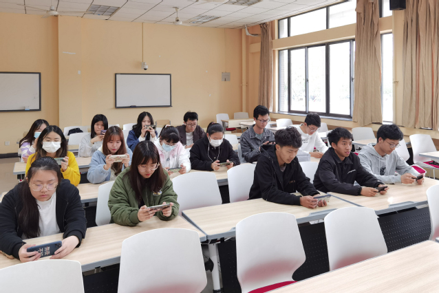 同学们正在自主观看同步直播
