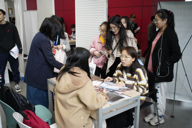 在学院领导、各系主任和专业老师的大力支持下,此次招聘会邀请到来自北京、上海、苏州、成都、南京、青岛、徐州等地44家单位参加现场招聘会,需求专业涉及建筑学、环境设计、工业设计等各个方向。招聘会上,单位和学生双方根据各自的需求进行充分交流。双选会现场气氛热烈。毕业生们着装得体,准备充分,积极投递简历,主动向招聘单位人员介绍自己,展示自己的求职优势,交流岗位期待,并咨询自己关心的问题。一些非毕业年级的学生也来到现场,提前感受求职氛围,学习求职经验。会议期间,学院领导、辅导员班主任老师和相关专业老师走进会场与用人单位亲切交谈,细致地询问单位的招聘需求和学生的发展空间,给学生们现场答疑解惑。