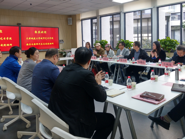 10月22日下午,天津城建大学城市艺术学院院长张小开、副院长殷陈君、副院长杨艳红等一行8人来我院调研考察。学院在B201会议室举行座谈会。我院院长罗萍嘉、副院长孙良、副院长姚君、环境艺术系和工业设计系部分教师代表及学工办主任陈文雯、科研研究生办公室孙婧参加会议。