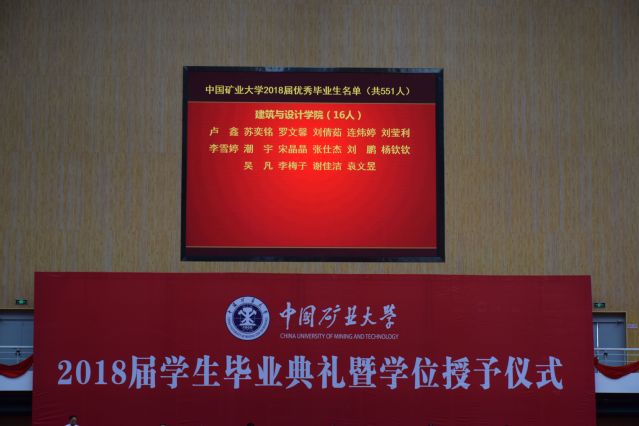 随后,副校长赵建岭宣读了《2018届优秀毕业生表彰决定》和《2018届基层就业先进个人表彰决定》。其中,建筑与设计学院卢鑫等16名同学荣获“中国矿业大学2018届优秀毕业生”表彰,姚立灿荣获“中国矿业大学2018届基层就业先进个人”表彰。