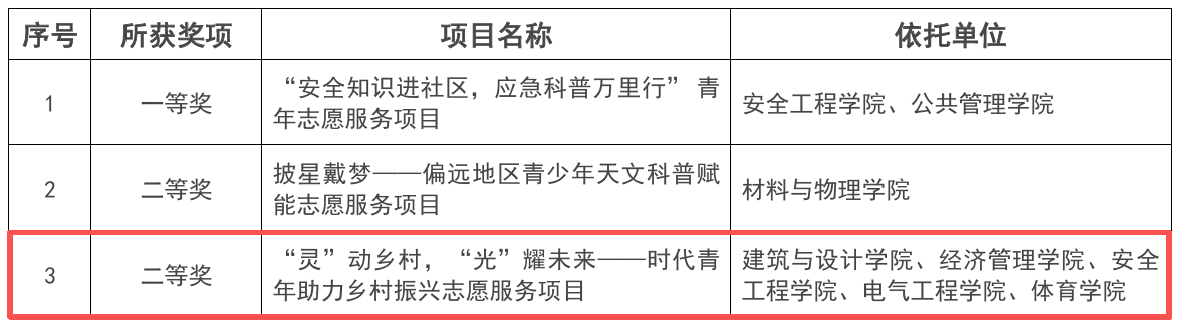 长期以来,我院高度重视实践育人工作,将志愿服务作为培养学生社会责任感、创新精神和实践能力的重要载体。此次获奖,不仅是对项目团队辛勤付出的肯定,也是我院“以赛促学、以学促行”、推动志愿服务与专业教育深度融合的成果体现。未来,我院将继续坚持立德树人根本任务,进一步建立健全志愿服务工作体系,引导更多青年学子将专业所学服务于社会所需,为服务国家发展和现代化建设贡献青春力量。