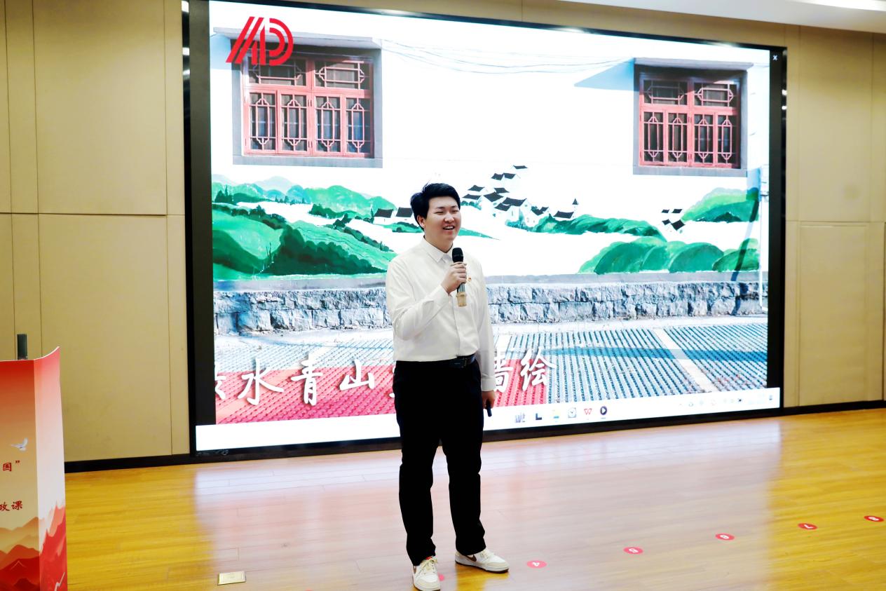 校团委书记程婷婷宣读了《2025年暑期社会实践先进集体和个人》表彰名单。相关部门负责人分别为社会实践活动先进个人代表、优秀指导教师、先进工作者、十佳团队颁奖。我院团委荣获2025年暑期社会实践“先进单位”,“手绘乡村新画卷”社会实践团获校“十佳团队”、“揭榜挂帅”乡村振兴专项行动擂主。“手绘乡村新画卷”社会实践团柳小凡在思政课上分享暑期在我校定点帮扶地灵璧县灵光村开展乡村墙绘与美育支教的实践经历与成长感悟。