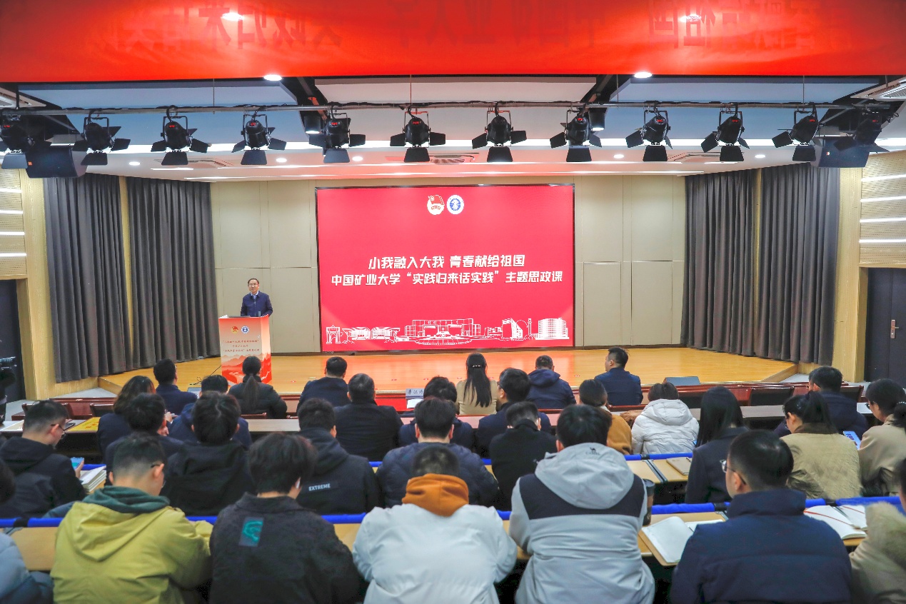 12月12日下午,“小我融入大我·青春献给祖国”中国矿业大学“实践归来话实践”主题思政课在镜湖大讲堂举行。校党委副书记李江涛,相关部门负责人、各学院党委副书记、团委书记和实践团师生代表参加本次活动。