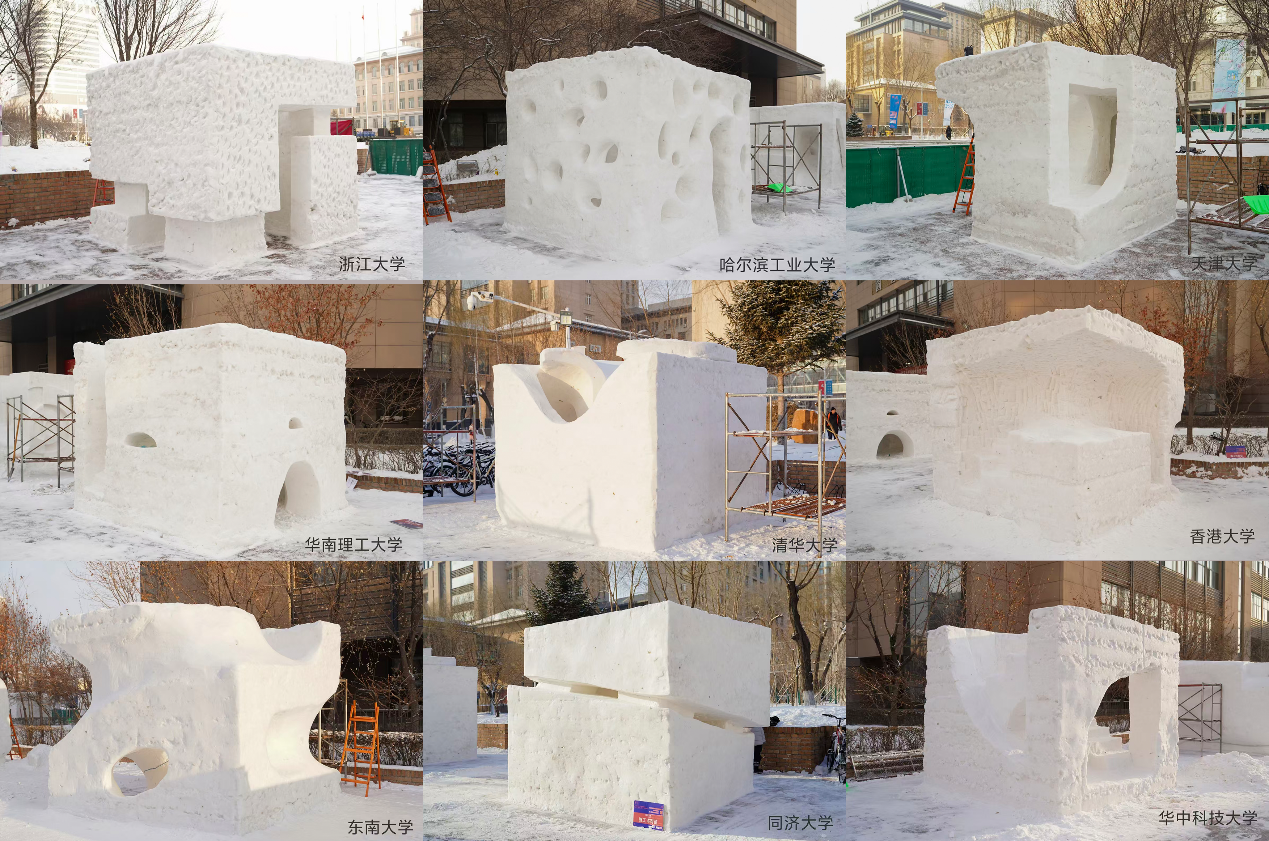 本次“心裁巧思、筑雪为间”高校雪构建造节的主题是“寻•光”,即在一个完整的雪块中,以减法的方式,为校园冰雪文化活动建造临时建筑或艺术装置。要求参赛者重新思考光与空间的关系,并通过孔洞创造能够引发人们对“光”进行深度感知与探索的空间体验。孔洞大小不限。此建筑或装置将成为学生参与体验冰雪和游戏的场所。