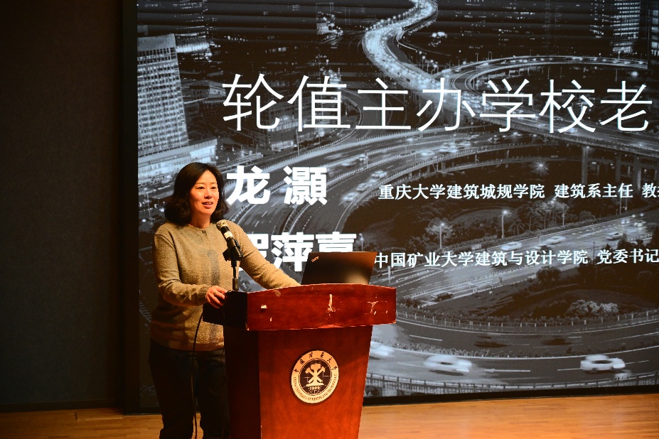 轮值主办学校老师代表重庆大学建筑城规学院建筑系主任龙灏教授致辞