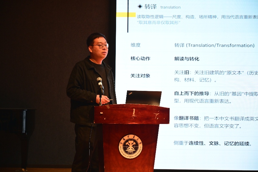 开营仪式结束后,一场场精彩的专题讲座轮番上演,为师生们带来了一场丰盛的学术盛宴。上海天华建筑设计有限公司副总建筑师吕淼以“上海风貌区的城市更新”为题,结合实际案例,深入剖析了历史风貌区保护与更新的策略与方法,让同学们对城市更新有了更深刻的理解。重庆大学建筑城规学院副教授赵亚敏围绕“建筑遗存的当代‘转译’与‘重构’”展开讲解,探讨了如何在当代语境下赋予建筑遗存新的生命力,引发了同学们的热烈思考。中国矿业大学建筑与设计学院教授常江带来“走近老矿-关闭矿井的更新之路”讲座,分享了关闭矿井更新改造的实践经验与研究成果,展现了工业遗产保护与再利用的无限可能。孙良教授则以“采掘与再生——龙东煤矿发展历程与遗存空间再利用”为主题,详细介绍了龙东煤矿的发展历史与遗存空间现状,为后续的现场调研奠定了坚实的理论基础。