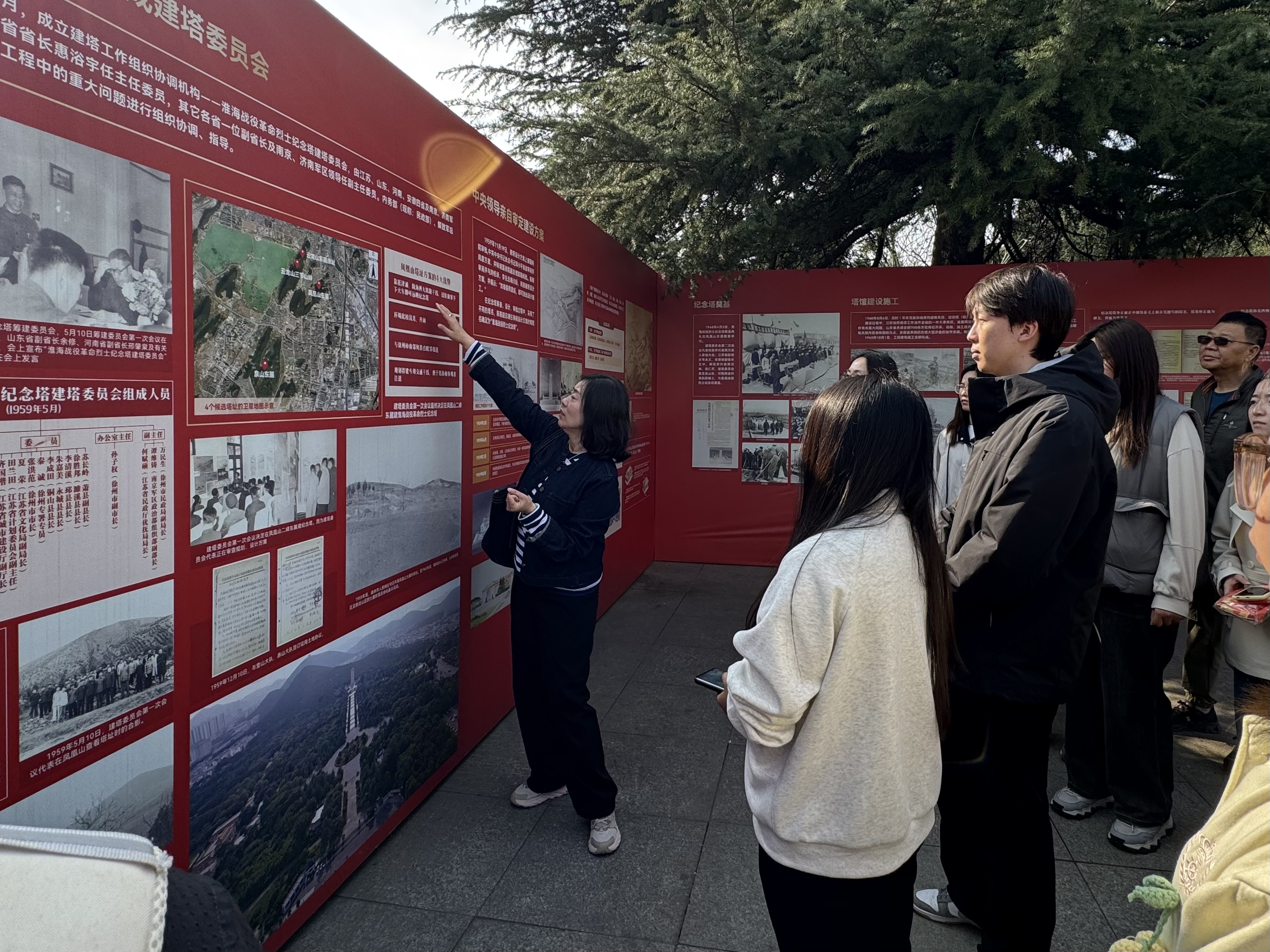 罗萍嘉立足学院建筑、设计、规划等专业特色,结合“人民的丰碑-淮海战役烈士纪念塔建成开放60周年图片展”主题展览,从纪念塔的方案设计、规划选址、总体布局、造型以及园林整体造型等维度,现场讲授了一堂沉浸式思政课。她从城乡规划视角解读淮塔选址的时代深意—如何依托地形地势彰显纪念性建筑的庄重与崇高;从建筑设计角度分析纪念塔的结构美学、空间叙事,阐释艺术表达与精神传承的统一;从布展细节切入,解读史料陈列、场景还原如何传递红色基因,让专业知识与红色教育有机结合,为学员们搭建起“看历史、悟精神、强专业”的学习桥梁。她在活动中勉励青年学员,要以先烈精神为指引,把红色基因融入专业学习与实践创新,立足建筑与设计领域,用专业所长服务社会发展,以实际行动践行青年担当。