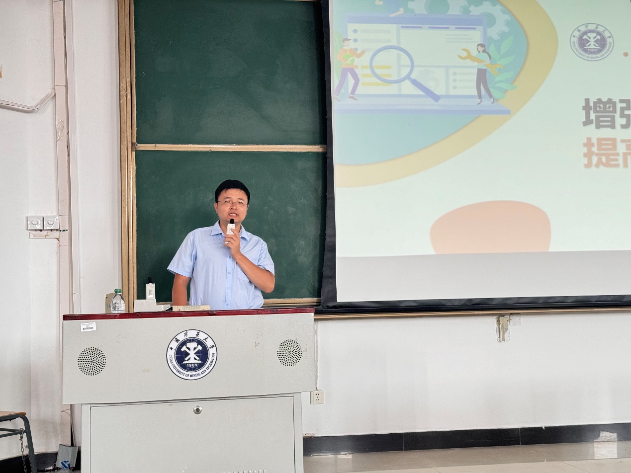 瞿望老师则围绕“安全概述、消防安全、交通安全、人身财产安全”四大板块,为新生们上了一堂生动的校园安全教育课。他运用大量实际案例和现场安全检查中发现的隐患照片,直观展示了校园安全的重要性,特别是宿舍安全管理的关键环节。瞿老师强调,安全无小事,每位同学都应成为自己安全的第一责任人,严格遵守校园安全管理规定,掌握必要的应急处理技能,共同营造一个安全、和谐的校园环境。