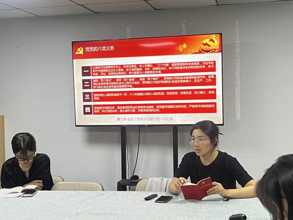 6月14日晚,建筑与设计学院2022级学生党支部在竹四党工委会议室开展党章学习分享会,支部指导老师陈文雯及全体党员参加,会议由支部书记孙晓蕊主持。