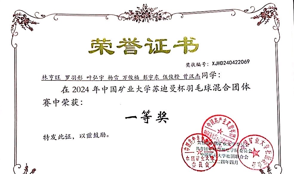 近日,中国矿业大学2024年苏迪曼杯羽毛球混合团体赛在南湖校区体育馆举行。经过两天的激烈角逐,建筑与设计学院代表队荣膺冠军。