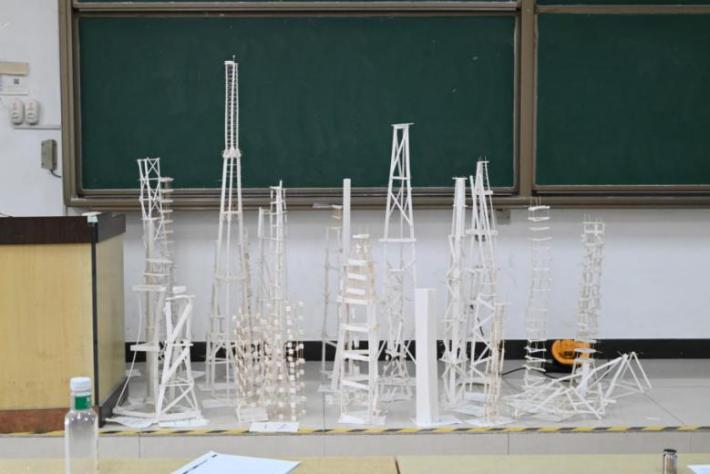 本次活动以小组形式进行,每组成员利用统一发放的KT板、牙签和绳子等材料进行模型设计搭建。各比赛小组充分发挥聪明才智,探索了高且稳的高楼结构解决方案,在防风能力、结构高度和重量等方面,每组作品都表现了各组其独特的设计理念。赛后,根据现场数据测试,结合网络投票结果,评选出一等奖2组、二等奖4组、三等奖7组。