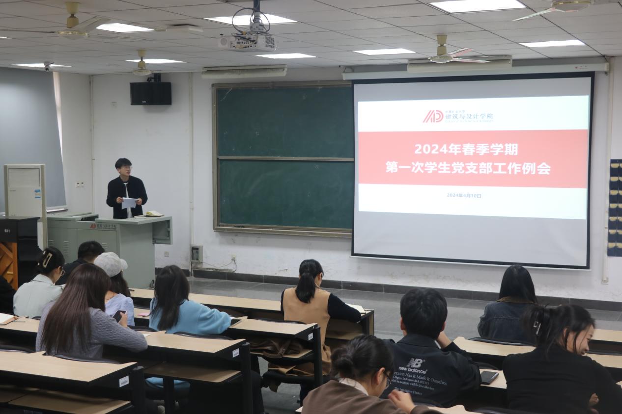 4月10日下午,建筑与设计学院在A310教室召开2024年春季学期第一次学生党支部工作例会。院党委副书记许梓楠、学生党建指导老师周天涯、兼职组织员张忠建及全院学生党支部委员会成员参加。会议由张忠建主持。