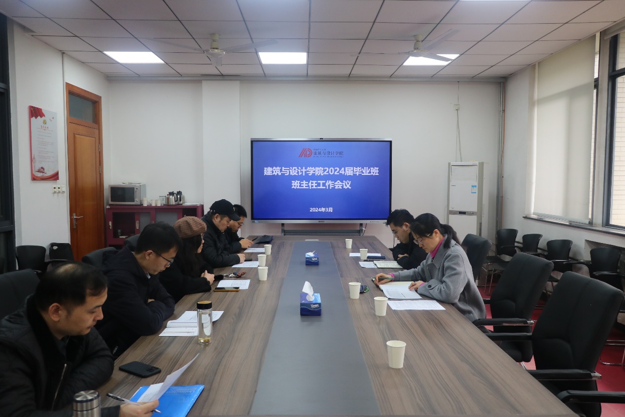 3月13日下午,建筑与设计学院在B302会议室召开2024届本科生毕业班班主任工作会议。院党委副书记许梓楠、本科毕业生辅导员周天涯及毕业班班主任参加了会议。