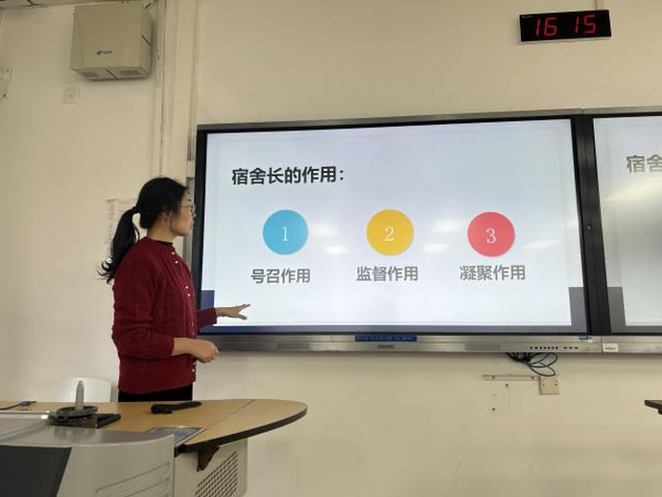 为了提高宿舍长的工作能力,推进营造健康和谐的宿舍环境,建筑与设计学院于3月15日下午在博五楼A108教室,组织召开 2022级宿舍长培训会,共有48名宿舍长参加。会议由陈文雯老师主持。
