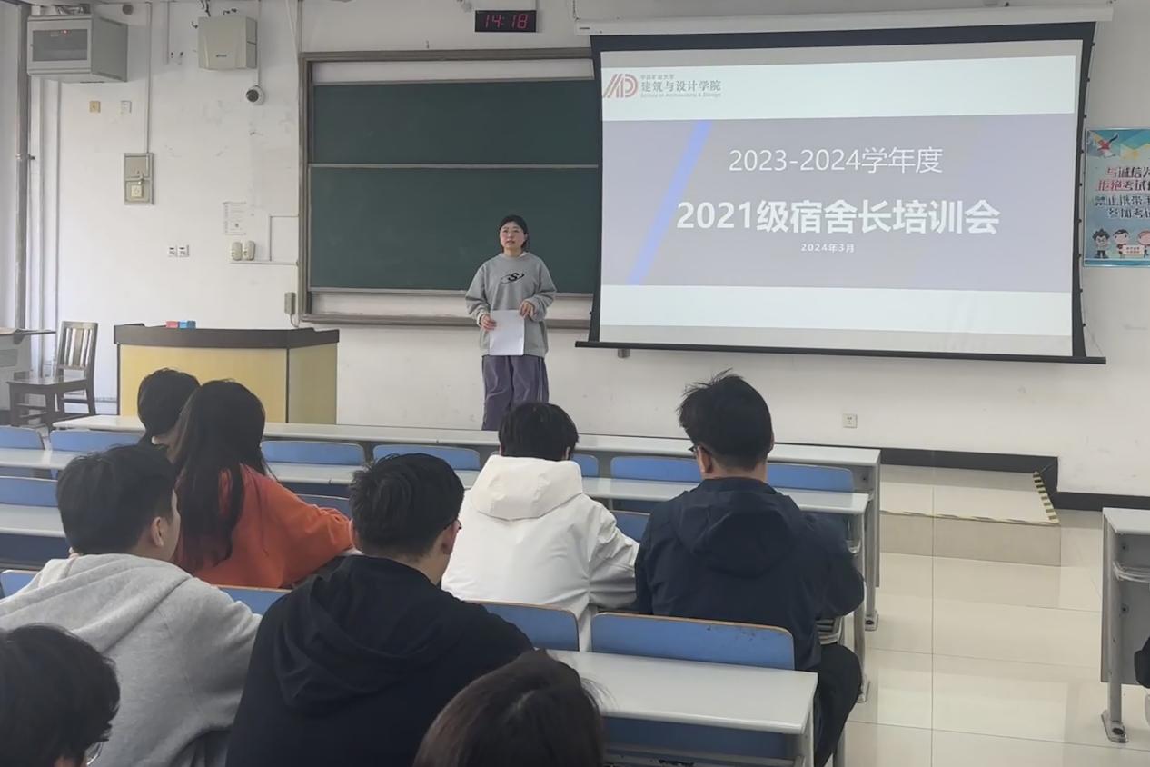 为进一步强化宿舍建设,营造平安和谐、积极进取、团结幸福、携手并进的宿舍氛围,3月29日,建筑与设计学院在博1楼B102教室组织召开2021级宿舍长培训会,兼职辅导员王秀芳老师及21级宿舍长参加,会议由王秀芳老师主持。