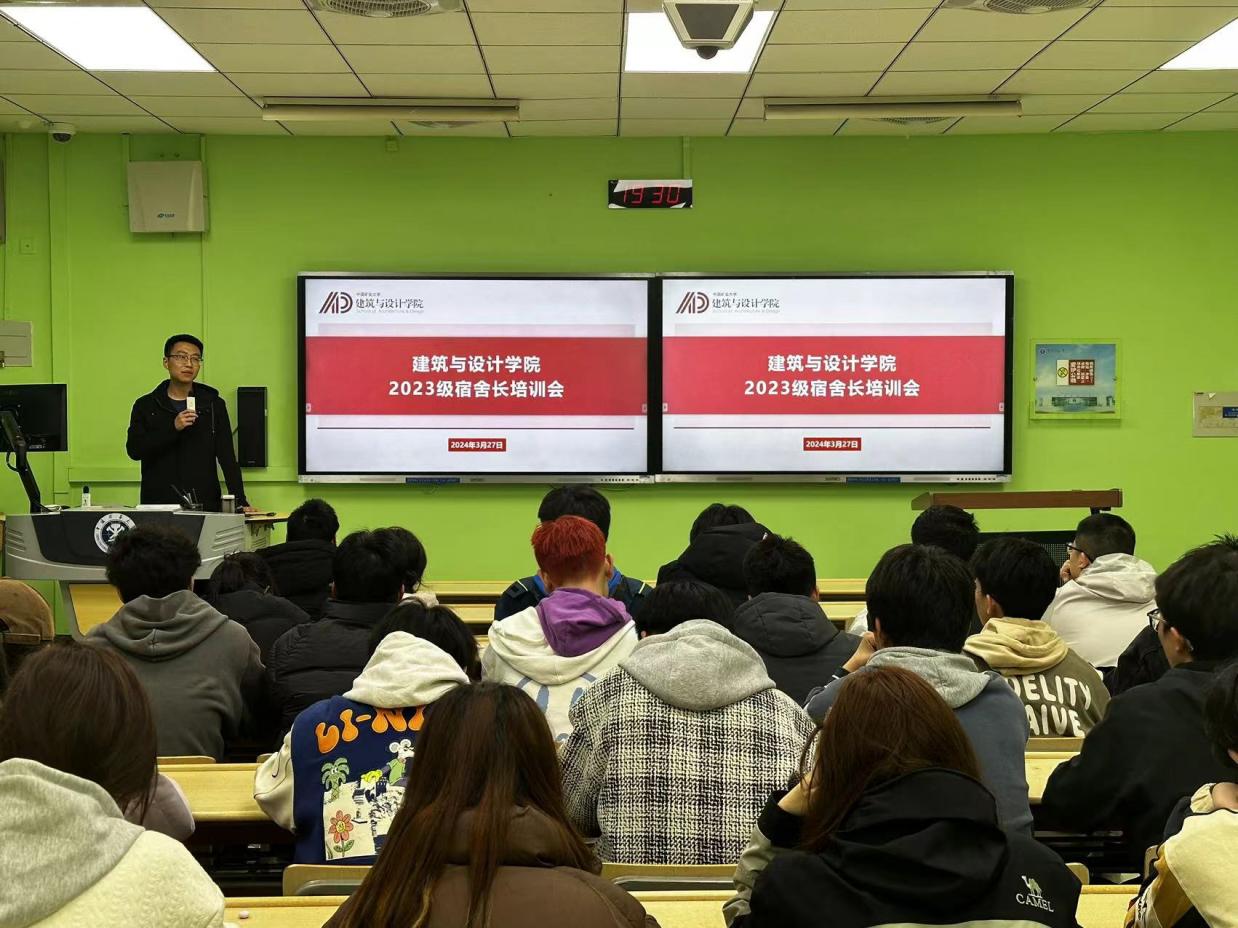 3月27日,建筑与设计学院在博4-B203召开2023级宿舍长培训会。2023级54名宿舍长参加,会议由辅导员姚昊老师主持。