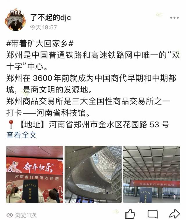为促进同学们对家乡文化的深入了解,展示家乡的文化底蕴和独特魅力,寒假期间,建筑与设计学院学生会开展“带着矿大回家乡”活动,吸引了众多同学积极参与,反响热烈。