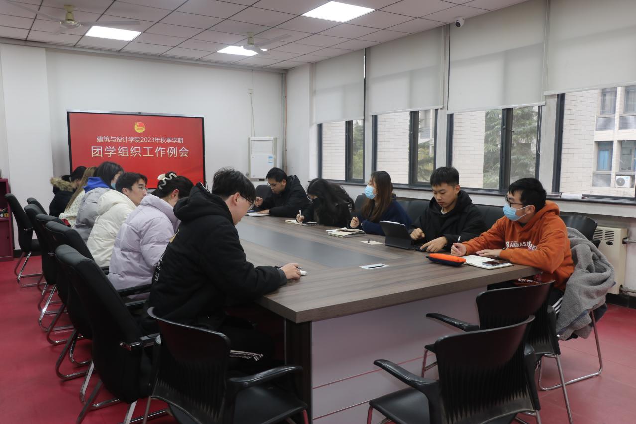 12月15日上午,建筑与设计学院在学院楼B302会议室召开2023年秋季学期团学组织第四次工作例会。院团委书记周天涯、学生会指导老师姚昊及各团学组织负责学生参加。会议由周天涯老师主持。
