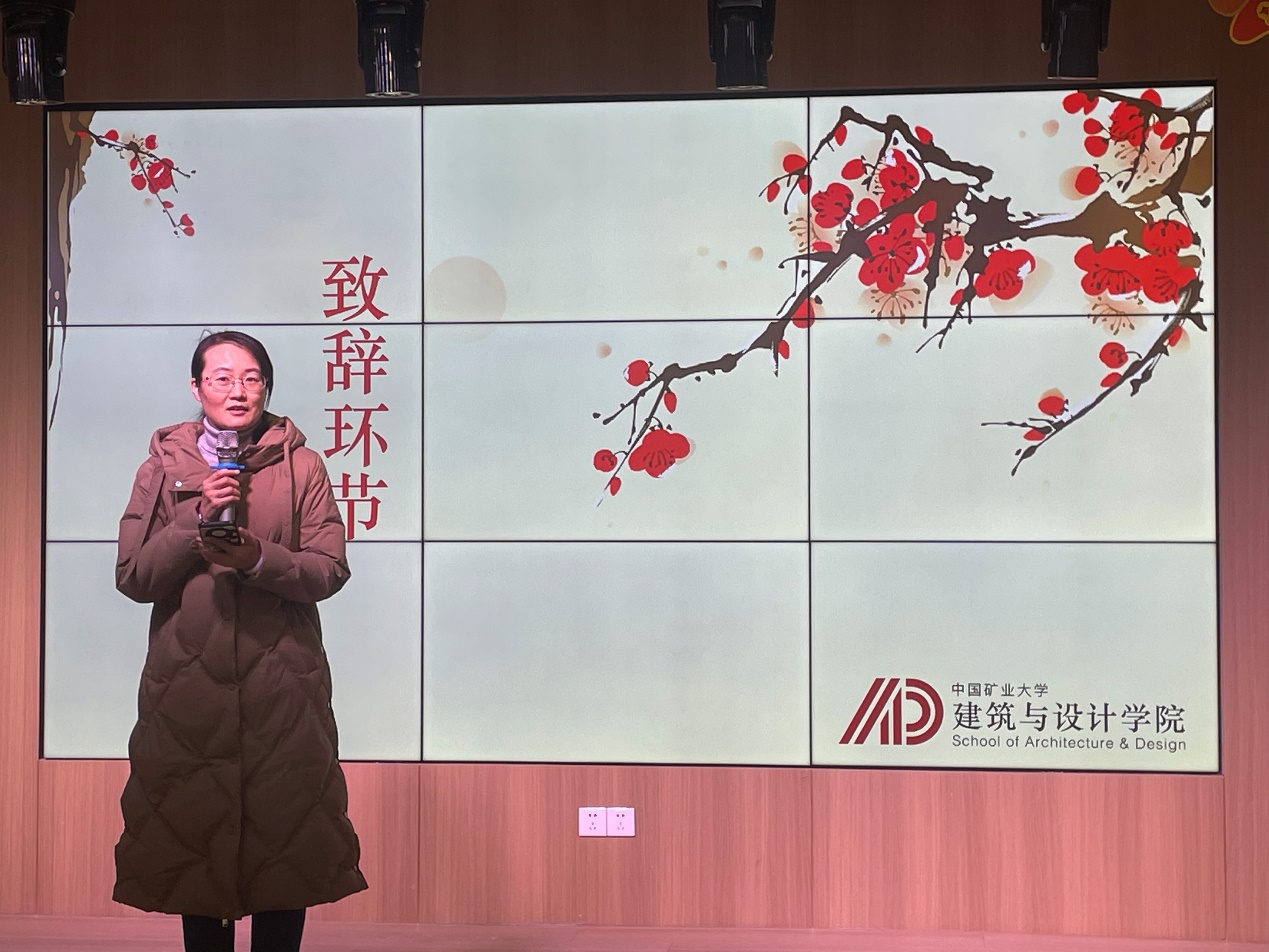 许梓楠副书记致辞,她首先对这一年里各团学组织同学的辛勤付出和默默奉献表示感谢,在大家的共同努力下,学生工作取得了丰硕的成果,她希望大家在新的一年里继续发扬同舟共济的精神,团结协作,把设计学院建设成同学们喜欢和眷恋的家园。