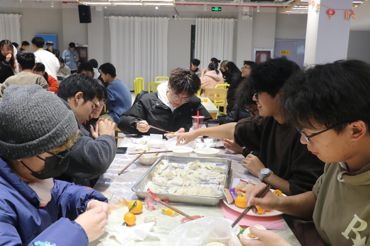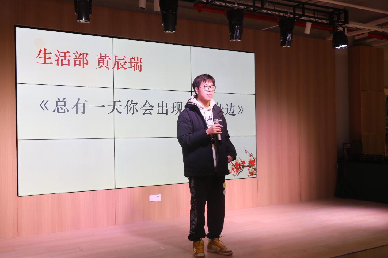 之后开始了晚会环节,晚会在同学们的演唱节目中拉开序幕,《开心超人》《我还有点小糊涂》《大家一起喜羊羊》等欢快的歌曲唤起了大家的回忆;《稻香》《总有一天你会出现在我身边》等流行音乐也引起大家的哼唱;神奇的“魔法”表演让同学们连连发出惊叹;姚昊老师的独唱《我们的时光》夺得了现场观众的阵阵掌声。晚会期间,师生还组织了包饺子、猜灯谜,晚会的气氛轻松欢快。最后,现场的师生上台合影纪念,团拜会在欢声笑语中结束。