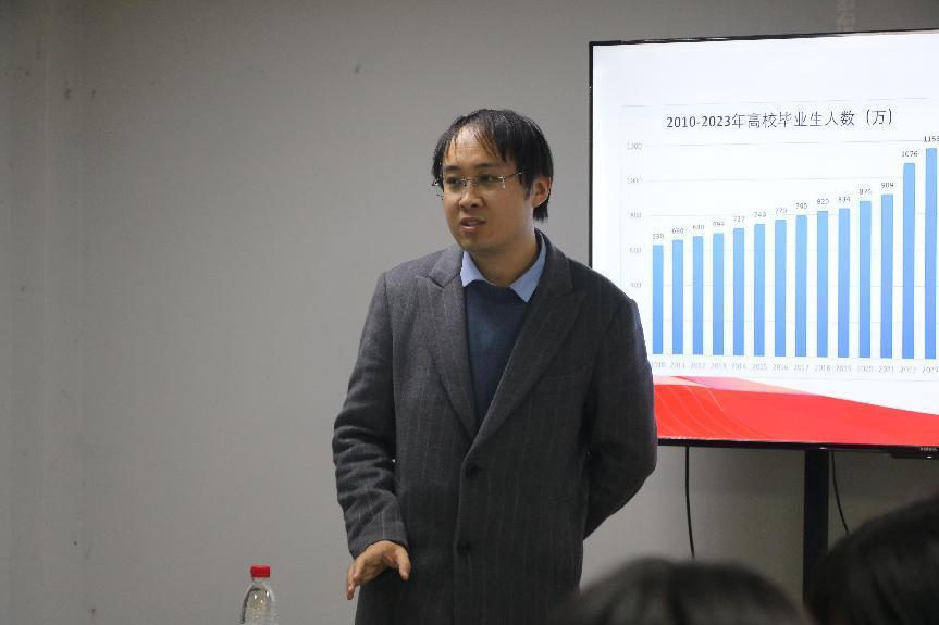 曹震学长从公务员岗位优势与竞争程度,公务员考试分类以及公务员考试方法技巧等多个方面进行详细介绍,从报名时间、考试内容和试卷结构三个部分逐一向大家介绍国考、省考和选调生考试的具体内容及注意事项,详细分析了各类公务员考试的差异与利弊。他并结合自身经历,分享个人公务员考试备考经验和多年参与相关工作的心得体悟,为同学们提供了宝贵建议,并详细解答了同学们的问题。