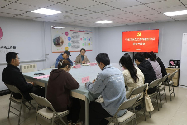 交流会后,竹苑区分党工委特邀指导员李灏、设计学院党委副书记许梓楠与竹苑区各学院学生党员工作站代表进行了座谈交流。